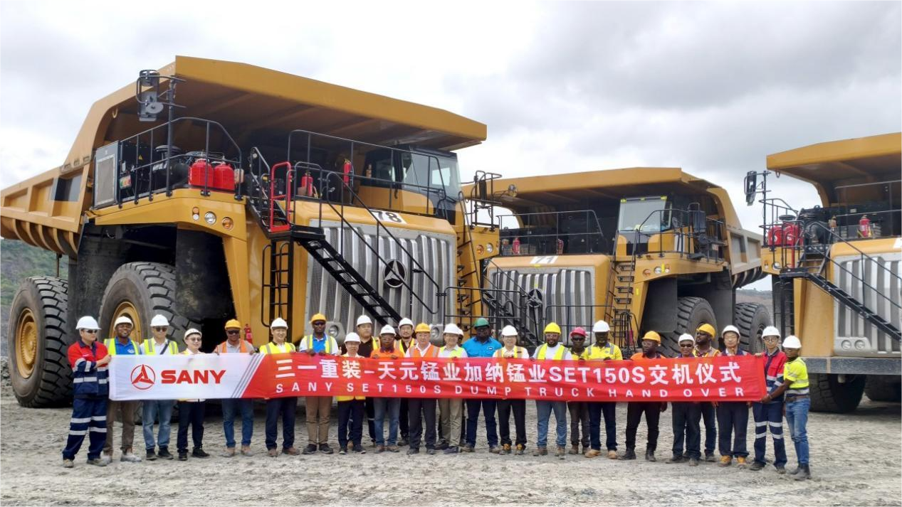SANY has achieved another milestone with the batch delivery of SET150S large-tonnage hybrid trucks to GMC in Ghana. This marks the model’s first entry into West Africa and reflects SANY’s commitment to supporting global mining customers with efficiency and sustainability. To meet GMC’s 8-million-ton annual manganese production target, SANY launched a green delivery channel. Internal teams worked seamlessly across manufacturing, shipping, and on-site assembly. Despite the rainy season and local challenges, SANY’s service engineers arrived early, coordinated resources, and completed the first batch of 8 trucks 15 days ahead of schedule. Impressed by the speed and quality of delivery, GMC immediately placed a follow-up order for 8 more trucks.